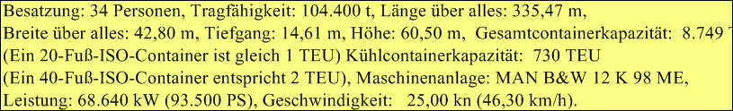 Die Colombo Express mit Heimathafen Hamburg befährt im Rundreisedienst die Route Asien-Europa-Asien, angelaufen werden die Häfen Shanghai, Xiamen, Yantian, Hongkong, Singapur, Southampton, Hamburg, Rotterdam, Port Klang, Singapur, Hongkong und wieder Shanghai - die Rundreisezeit beträgt 56 Tage.
