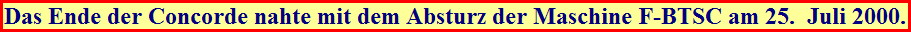 Beim Start des Air-France-Fluges 4590 auf dem Flughafen Paris-Charles de Gaulle wurde ein Reifen von einem auf der Startbahn liegenden Metallteil zerfetzt, Hochgeschleuderte Gummiteile des platzenden Reifens durchtrennten ein stromführendes Kabel des linken Hauptfahrwerks, bevor sie mit großer Wucht auf die Unterseite der linken Tragfläche aufschlugen. Aufgrund der Schäden an Tragflächen, Ruderflächen und Triebwerken war die Maschine nicht mehr steuerbar und schlug rund eine Minute nach dem Start wieder auf. Alle 109 Menschen an Bord und vier Bewohner eines Hotels kamen ums Leben.