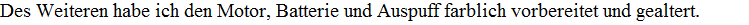 Die vorlackierten Teile der Vorder- und Hinterachse, sowie die Unterseite des Motorblocks wurden am Unterboden befestigt.