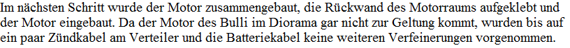 Hier sollte der Samba-Bulli Ersteinmahl zum Abschluss kommen. Die weitere Ausschmückung des Fahrzeugs soll mit der Fertigstellung des Verkaufsstandes auf dem Diorama einhergehen.