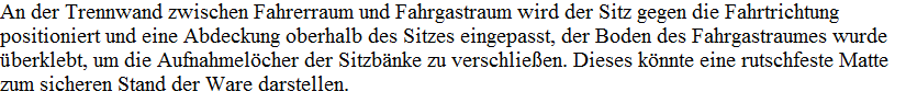 Der Sitz soll gegen die Fahrtrichtung eingebaut werden, hierzu musste ein Teil der Verkleidung ausgeschnitten und neu verschlossen werden.