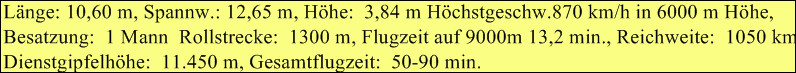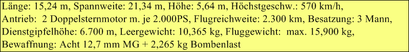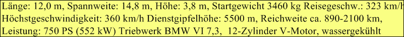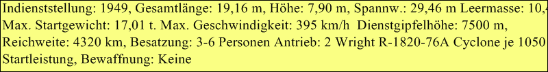 Besatzung: 1, Länge: 8,56 m, Spannweite: 14,03 m, Höhe, 3,04 m, Flügelfläche: 29,64 m² Leergewicht: 974,00 kg, Startgewicht: 2.330,00 kg, Höchstgeschwindigkeit: 220 km/h Leistung: 223 PS (166 kW), Triebwerke ein 9-Zylinder-Sternmotor Wright J-5C Whirlwind