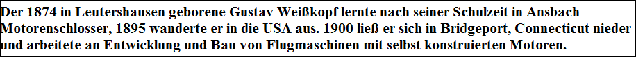 Foto vom Fluggerät und Bild des Flugpionier Gustav Weißkopf
