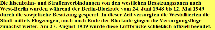 Daten der Luftbrücke (Beginn 26. Juni 1948)